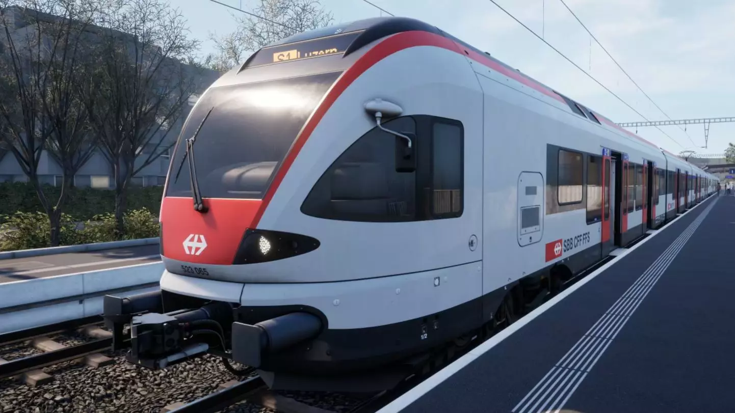 这是《模拟火车世界6》的虚拟铁道调研内容,展示了驾驶瑞铁RABe523型列车,执行从Luzern到Sursee的4720次线路任务的原速前方展望POV,呈现了驾驶过程中的路况、操作界面等内容。