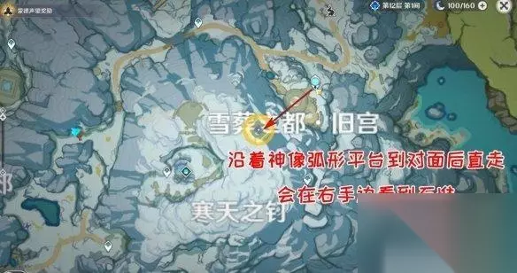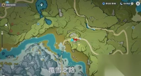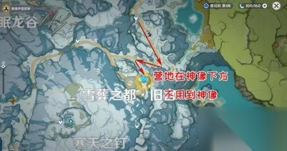 ▲小男孩乔尔及位置 据乔尔所说,本要接他到雪山看雪的父亲,到了约定的日子却没有如约来接他,因此乔尔想要自己去寻找父亲。无奈西风骑士不同意他自己进入危险的雪山,万般担心也只得留在这里等待,因此拜托正要进入雪山的旅行者,帮忙寻找乔尔的父亲。至此,任务流程正式开始。 1.沿着「覆雪之路」寻找乔尔的父亲 根据乔尔给出的信息,我们首先来到覆雪之路。前进路线如图所示(已经解锁了七天神像的旅行者可以直接传送到七天神像往下飞,营地就在神像下方,追踪目标会有很明显的黄色光柱,非常好找)。