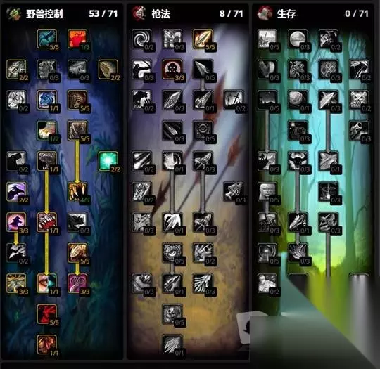 想要在魔兽世界wlk中玩兽王猎,可能不太清楚该如何选择天赋和凋文。下面就让我们一起来看看推荐的魔兽世界wlk兽王猎天赋和凋文吧。 魔兽世界wlk兽王猎天赋及雕文推荐 兽王猎人 天赋1: