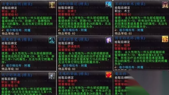 一、祖格九大职业的头/腿附魔