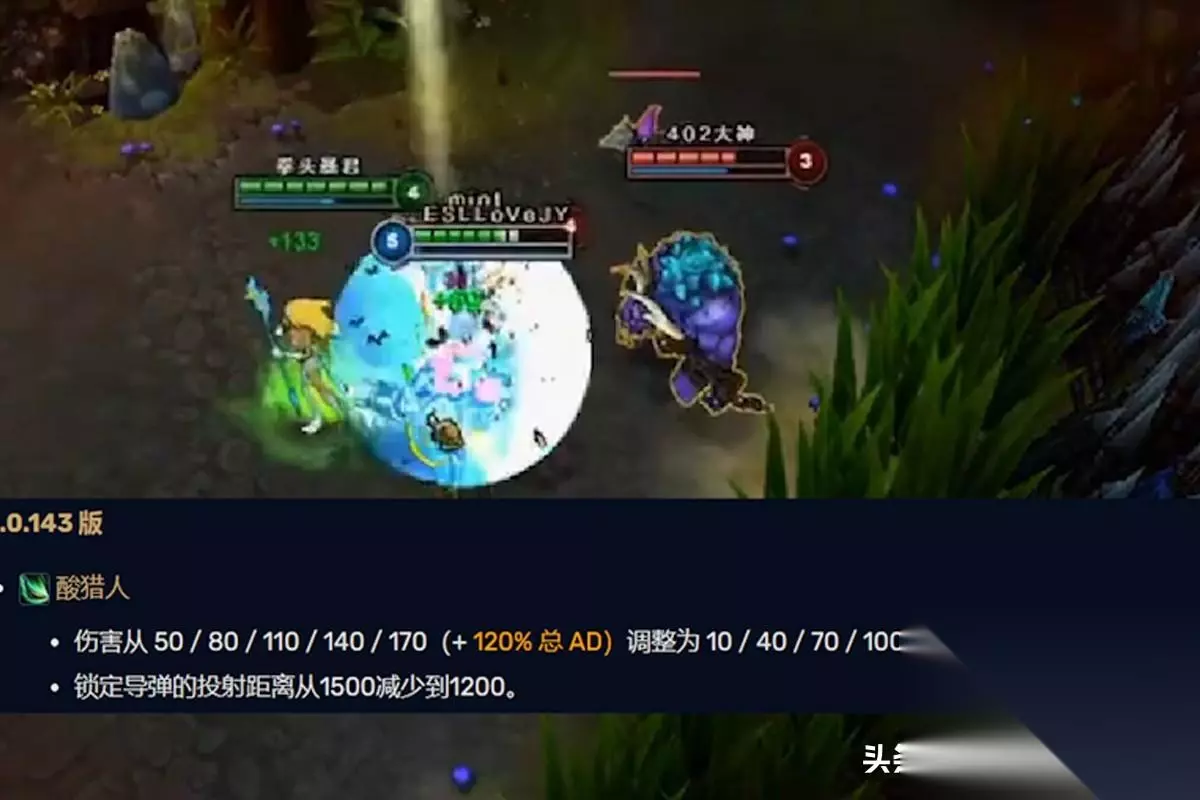 最早Q技能的数值非常夸张,E中之后射程长达1500码,比EZ的Q还要远300码,光靠这仨技能(EWQQ),前期就能把对手,折磨得半死不活,如果再吃个蓝,下路1V2都不在话下,以至于设计师不惜动用屠龙刀来限制它的对线强度。