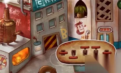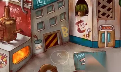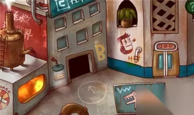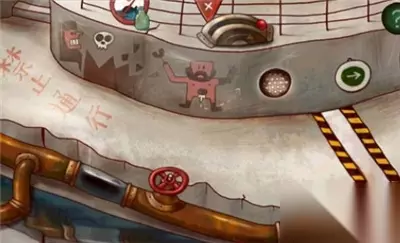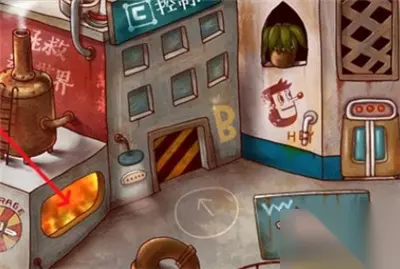 点击左侧按钮,来到左边的区域,在左侧锅炉旁边墙壁上有一个记忆碎片和一把铲子,点击收集。