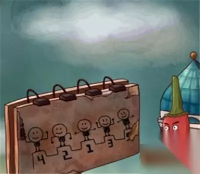 我们看每一个小人的手都以固定姿势,从12345顺序分别是平、下、上、上、平,我们记住这个规律。
