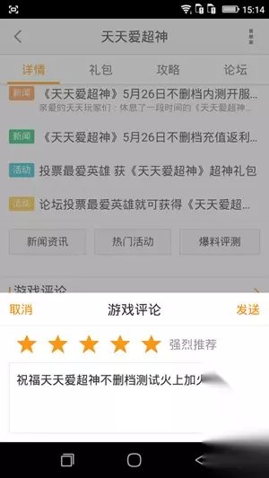 5月26日撸友福利重磅来袭,《天天爱超神》开启不删档内测,加入撸友队伍们一起脸滚手机屏吧! 天天专区留言送祝福,就可以领取QB!小神将每天在本帖统计专区留言送祝福的名单,100元QB充值卡、30元QB充值卡、5元QB充值卡等海量奖品签到领取,就要爽过瘾,撸翻天! 点击进入活动贴 【活动时间】:5月19日-5月31日23:59 【活动内容】:参与只需在>>>天天爱超神专区<<<评论区发表任意开测送祝福的评论并好评即可参与。如下图示例:(参与活动无需发截图,只需在专区发表留言,祝福评论即可)
