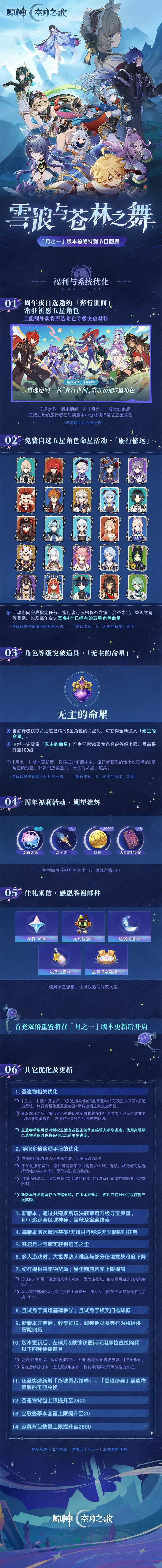 感谢各位旅行者的支持与陪伴,我们将为大家带来更多「『空月之歌·呈示』雪浪与苍林之舞」版本的最新消息~