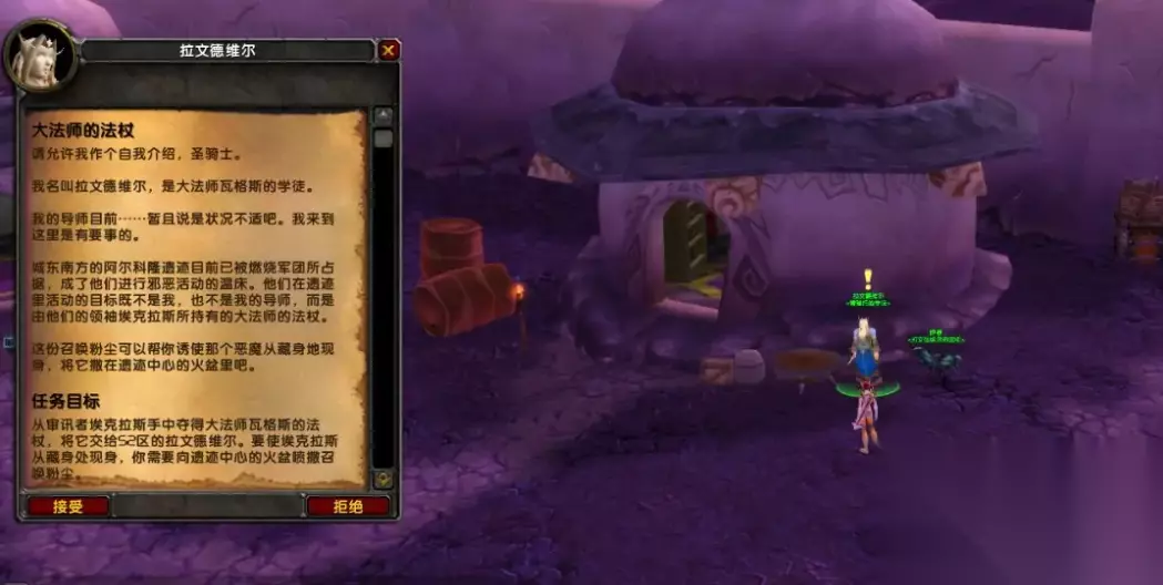 魔兽世界怀旧服大法师的法杖任务流程 进入游戏后在虚空风暴的52区与拉文德维尔对话接受大法师的法杖任务;