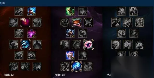 而他的凯南还有另外一套常规的天赋,这个天赋就是之前比较主流的雷霆凯南,依靠三段伤害配合雷霆打爆发。但是这个天赋对于现在R技能加强之后的凯南来说,雷霆的伤害明显会比冥火要低许多。