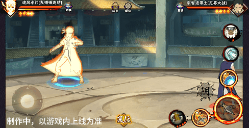 阴九尾查克拉(能量条)未蓄满一格,但满奥义点时点击二技能位置可清空奥义点释放小奥义,阴九尾可将凝聚中的查克拉立即激活,九喇嘛水门化身阴九尾用尾巴横扫敌人,随后持续咆哮攻击敌人。