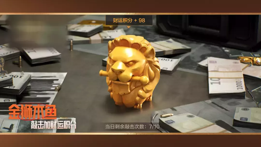 每天敲敲,好运+1!每天登录在活动页面敲击金狮木鱼,即可随机掉落财运积分!