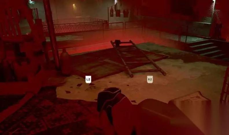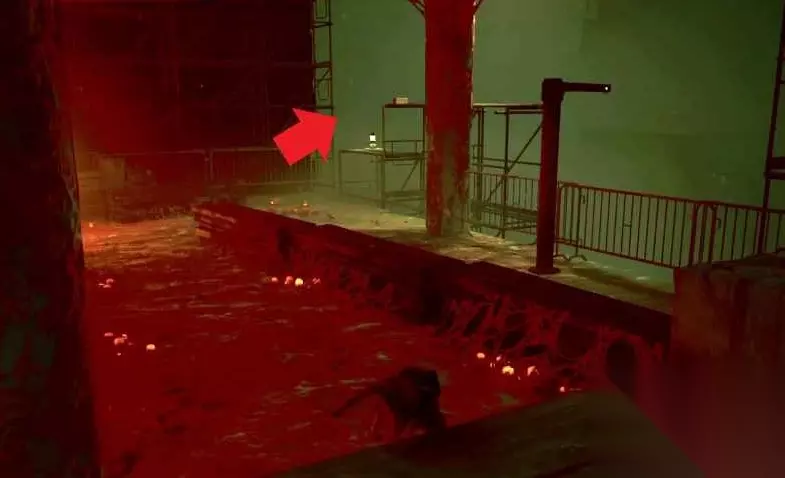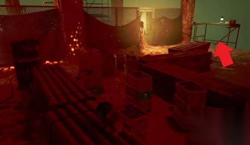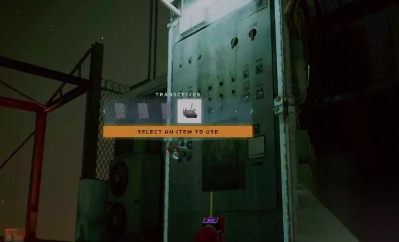 在电梯里,你可以通过键盘进入顶层。使用凳子跳出来,然后与区域中间的面板互动,并使用收发器。