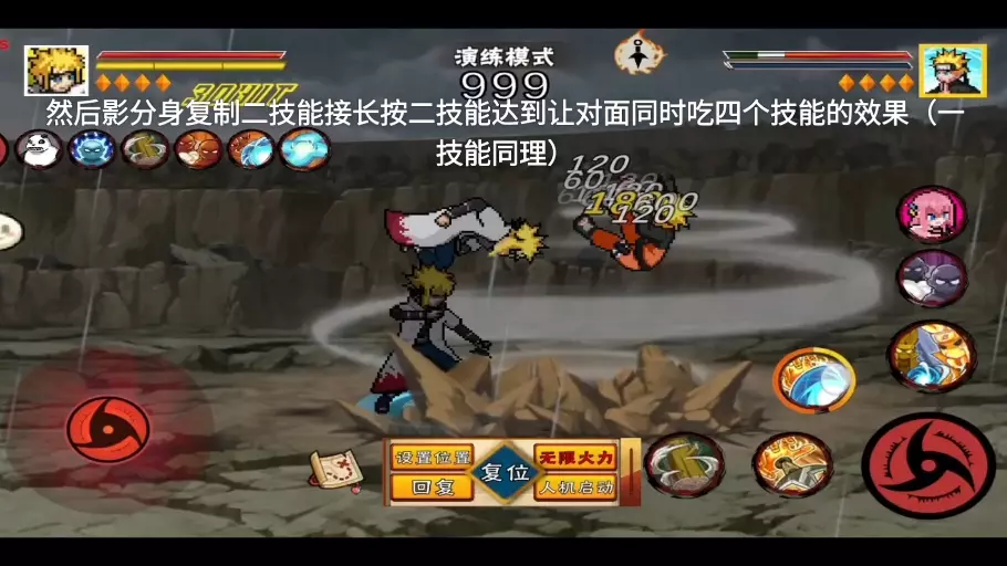 这篇帖子以《必剪创作 这就是为什么没有人说像素火影是抄袭游戏》为标题,展示了像素火影演练模式下的战斗画面,呈现了骨架之无条件双刀、骨架炸气一刀斩、破面之五段跳等特色战斗机制,体现像素火影的原创战斗设计。