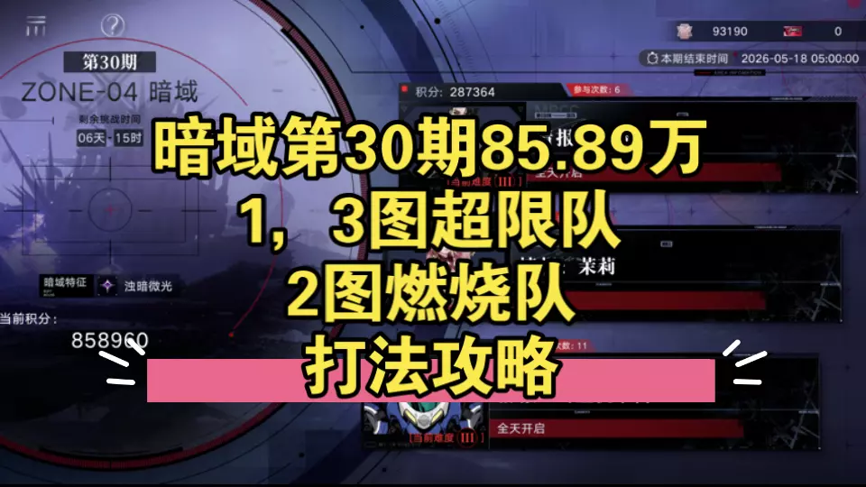 这是《无期迷途》暗域第30期的打法攻略,提供了低锁真伤队、低锁辅助燃烧队的打法,可打出79.87万的伤害,帮助玩家通关该关卡。