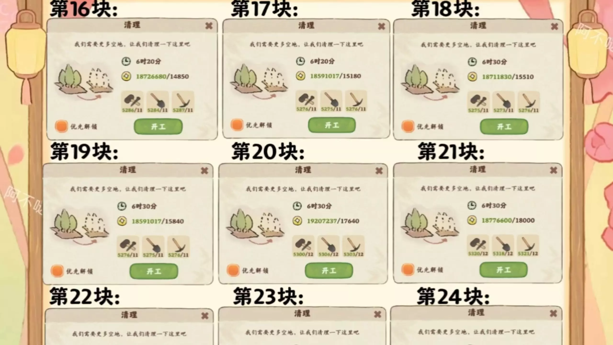 新山头开放啦!在二岛的蒲公英飞行站点击前往即可到达!感觉也太少了,开不了几天就又没了! 32块地 所需铜钱:475680 2,700+2,790+2,880+5…