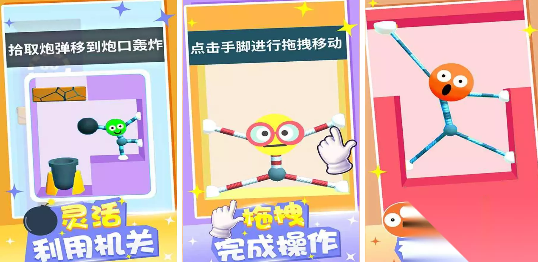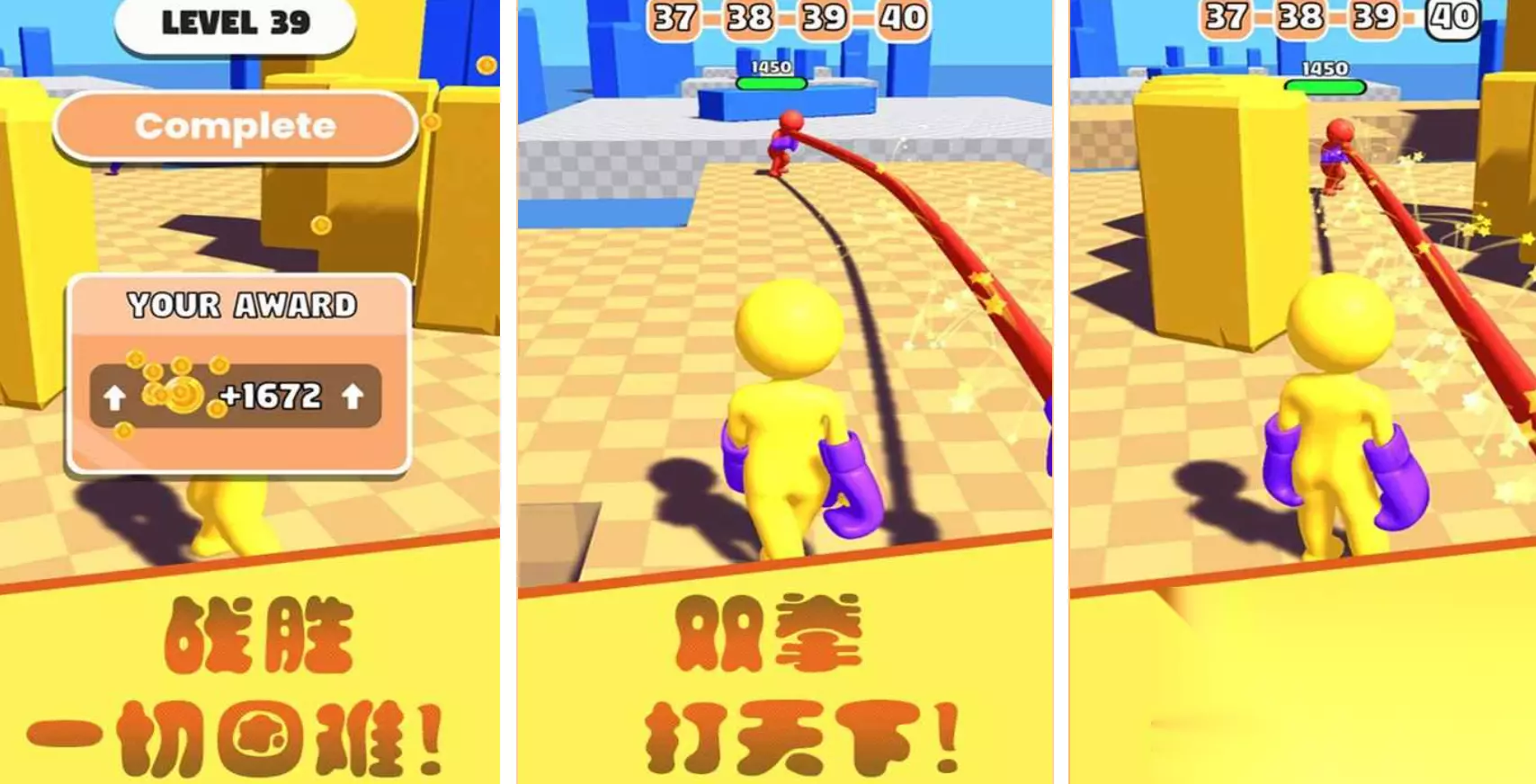 《橡皮人快跑》巧妙地利用了水晶泥材质的柔韧性以及跑酷竞技逻辑,成为了一起有趣的益智游戏。玩家要控制一个不断变化的橡皮小人,在布满障碍的赛道上通过拉伸或者压缩身体来通过狭窄的缝隙。游戏的形态变换主要集中在动态位移的形变判断,玩家要根据赛道上各种复杂的物理干扰,在极短的反应时间里作出变形或者跳跃等战术决定。 高速下载 普通下载 4、《橡皮人拳击》