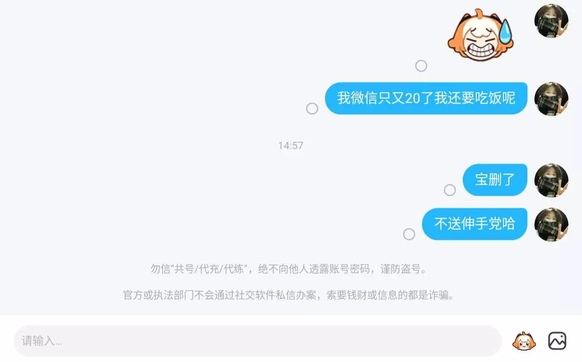 今天遇到了一个伸手党,他要我送礼,我只能送5O以下的,她却一直让我送贵的直接删了