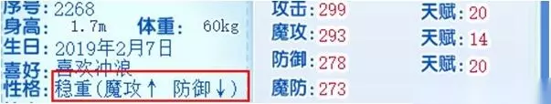 3、也可以选择稳重性格,也是可以增加魔攻的,但是会减少防御
