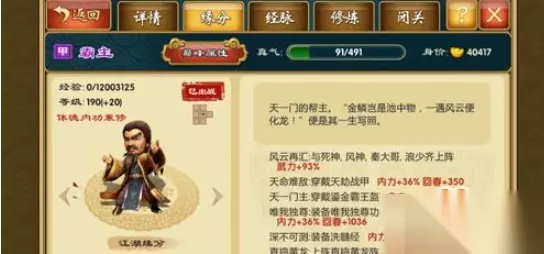 2018宗师甲弟子推荐 金鳞岂是池中物,一遇风云便化龙 天一门的帮主,曾受获四句批言,概括了他一生的命运:“金麟岂是池中物,一遇风云便化龙。九霄龙吟惊天变,风云际会浅水游。”正所谓成也风云、败也风云。一代枭雄最终因爱女被杀而自刎而亡。 弟子特点:体魄内力兼修。 天赋武功:天下归一功(极易施展,全体38(满级),1成武力9成内力)。