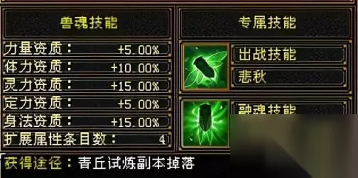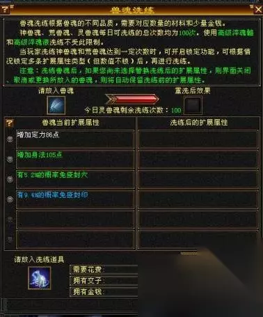 图片来自网络,感谢该玩家的贡献 每种兽魂除了两个固定的技能外,还有扩展属性,灵兽魂4条扩展属性,荒兽魂5条扩展属性,神兽魂6条扩展属性. 扩展属性从下面随机洗,类似洗暗器。比如你可以给你的体力宝宝洗如下属性:血上限,体力,会心防御,抗性,朱雀神兽魂,这样带着它打架,估计血量能到20万左右,不但可以抗伤害,还可以瞬间复活。