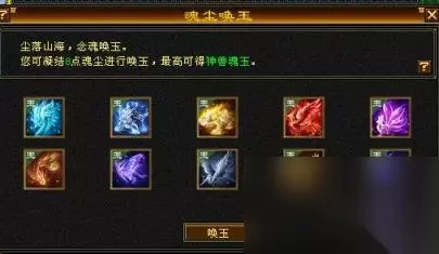 兽魂获取方式: 1刷新副本 2大理神秘商人 3新玄武岛打BOSS(不加杀气,容易被抢) 4销毁其他兽魂兑换(最常用) 5可以购买(内测最新道具,1000RMB就可以凑齐40个神兽魂) 销毁不喜欢的兽魂玉,获得魂尘,来这里抽奖。集齐40个青龙魂玉就可以召唤青龙兽魂。