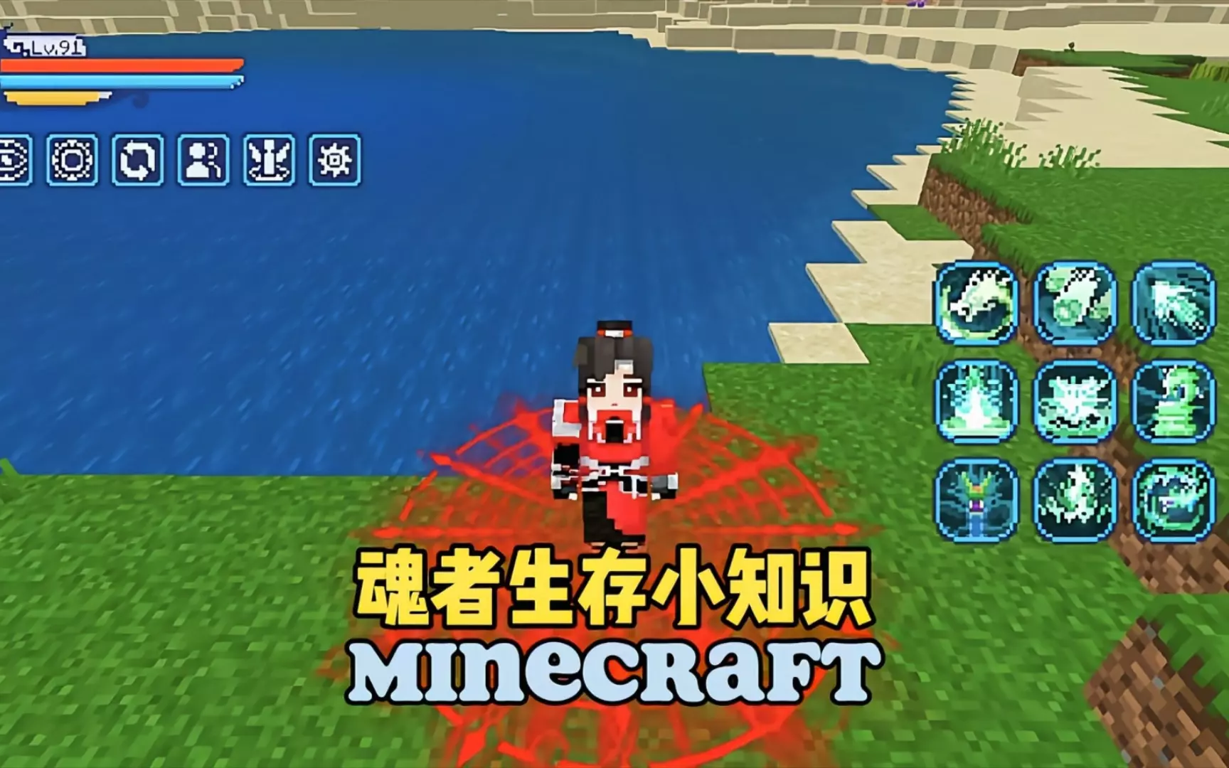 这是沙盒游戏《我的世界》的魂者大陆模组生存内容,玩家梦噬天在视频中展示游戏过程,开局成功觉醒了海神武魂,还展示了游戏内的场景、武魂外观以及魂环吸收相关环节。