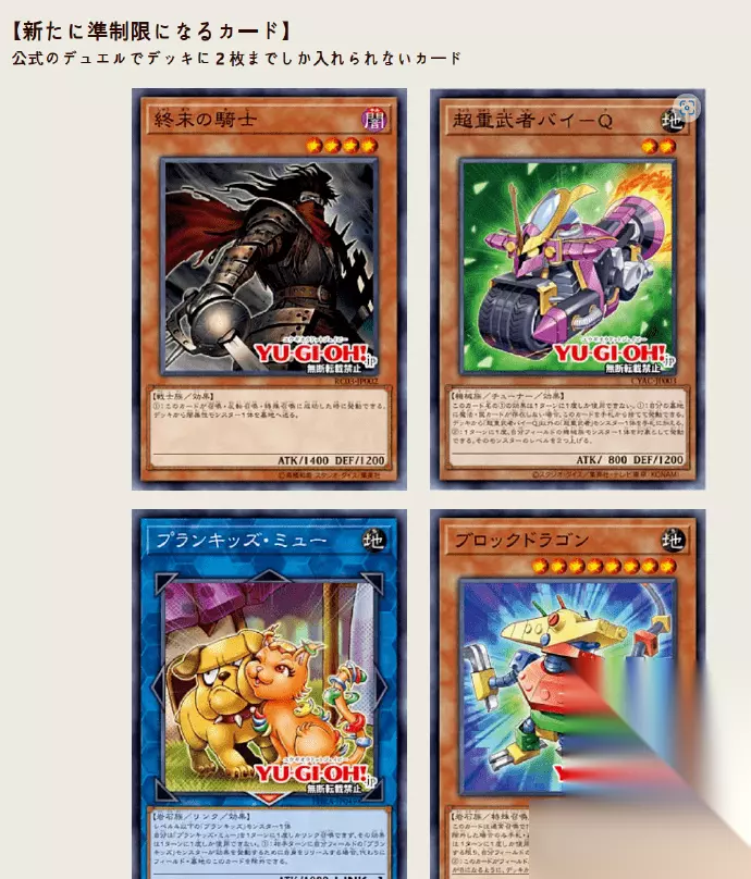 新准限制: 制限⇒準制限 终末之骑士 调皮宝贝喵喵猫 無制限⇒準制限 超重武者 摩托-Q积木龙
