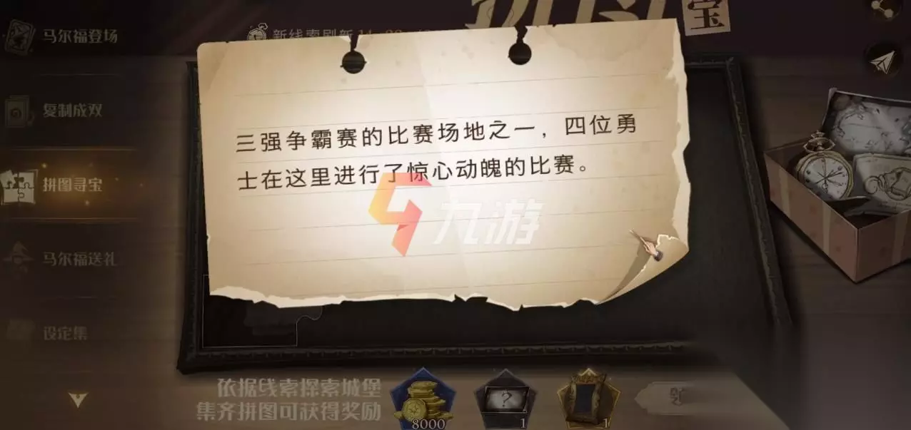 哈利波特魔法觉醒拼图攻略最全?哈利波特魔法觉醒攻略介绍 哈利波特魔法觉醒拼图任务攻略 触发方法: 通过界面左上角的菜单栏打开信箱之后可以看到有任务邮件,其中就有这封要求玩家找寻拼图的邮件,并随着信件附送了三条线索来暗示拼图的地点。 第一天 1、图书馆,最右边 进入图书馆,一直往右走,就能看到。