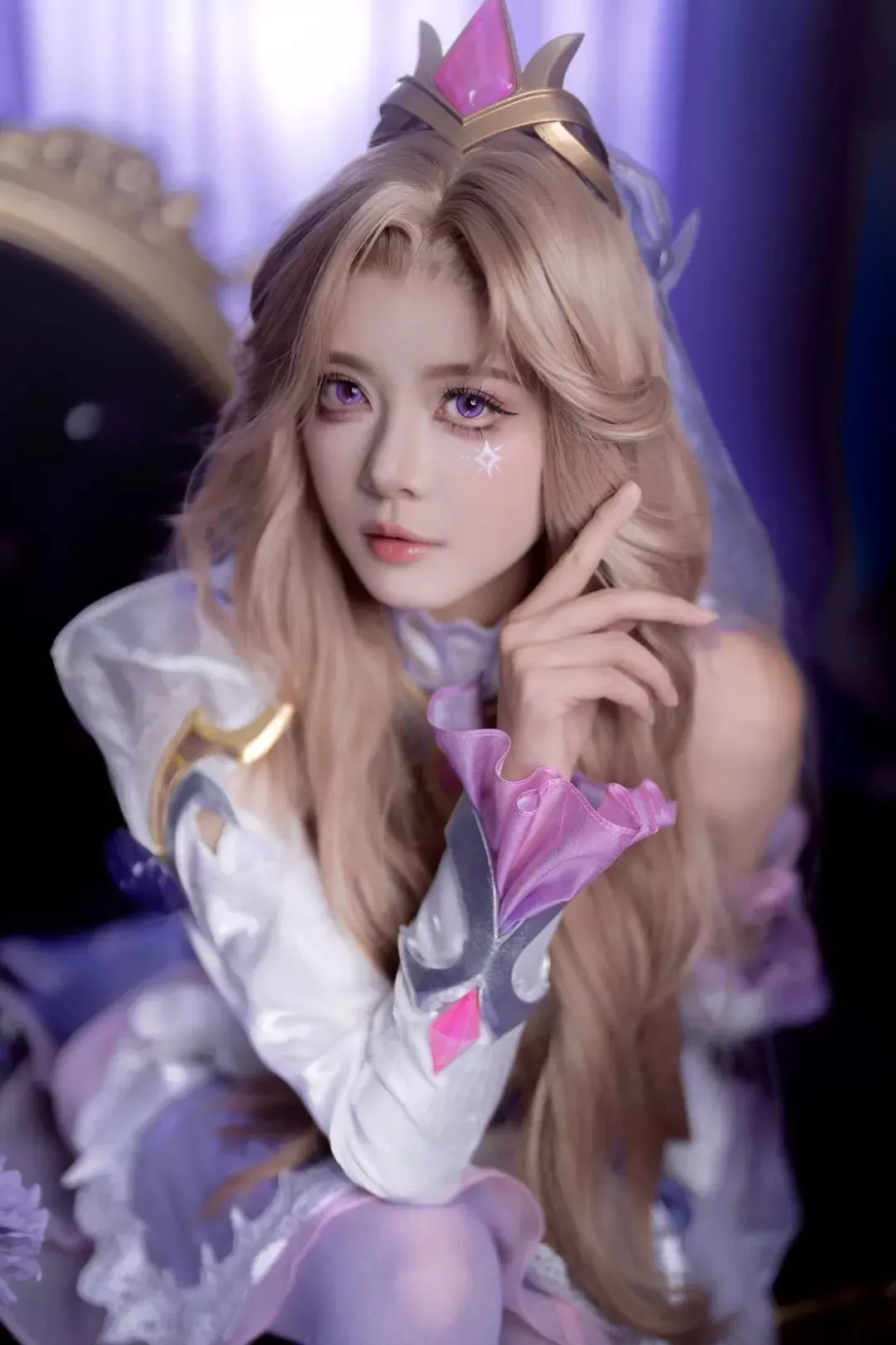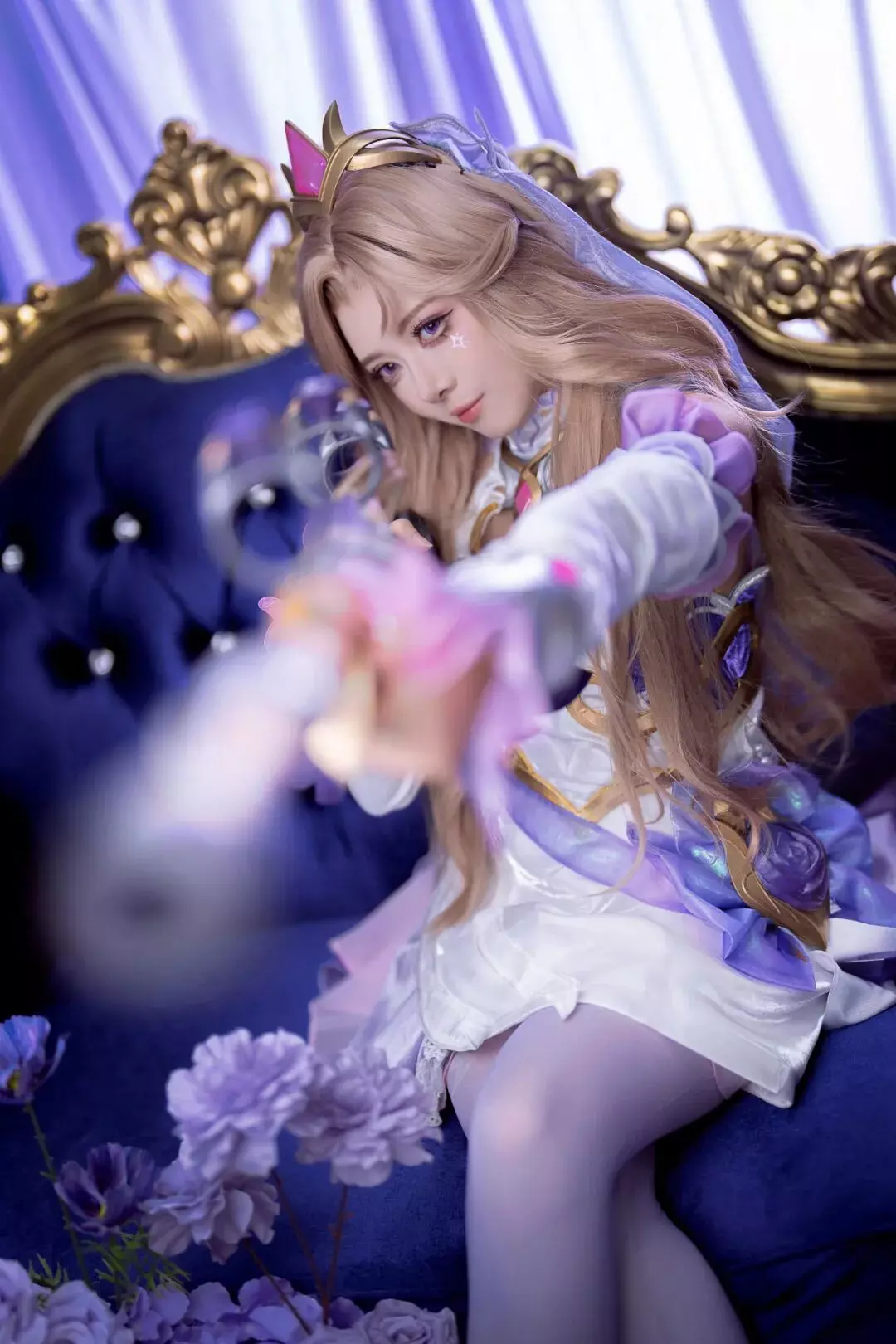 美颜暴击预警!化身水晶玫瑰 凯特琳的“整活女王”骆歆今日更是以一袭华丽造型闪耀《英雄联盟手游》女子SOLO赛总决赛现场!