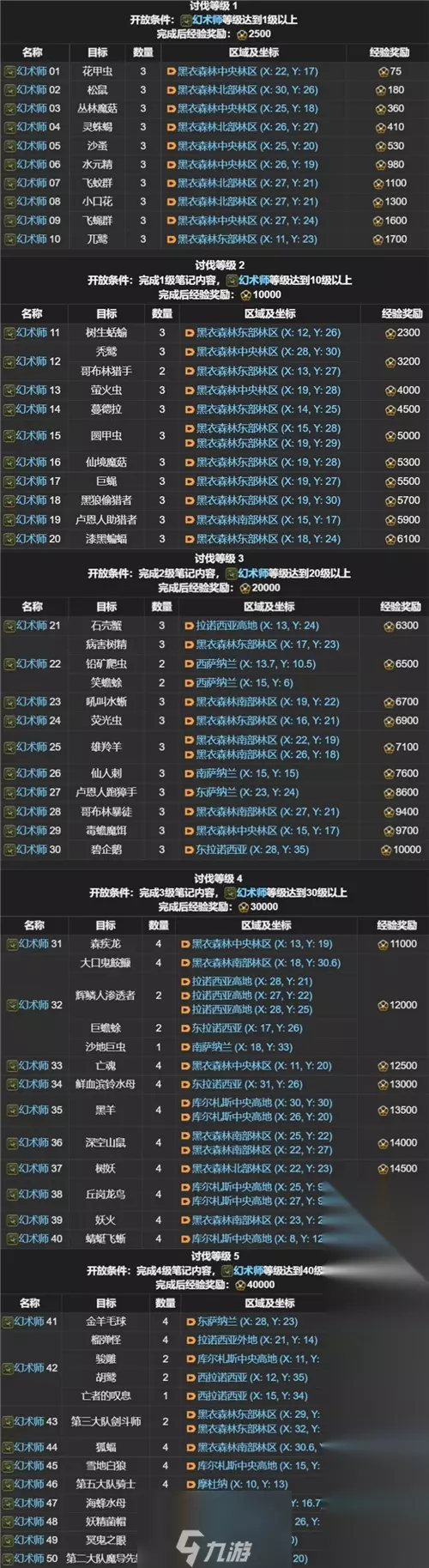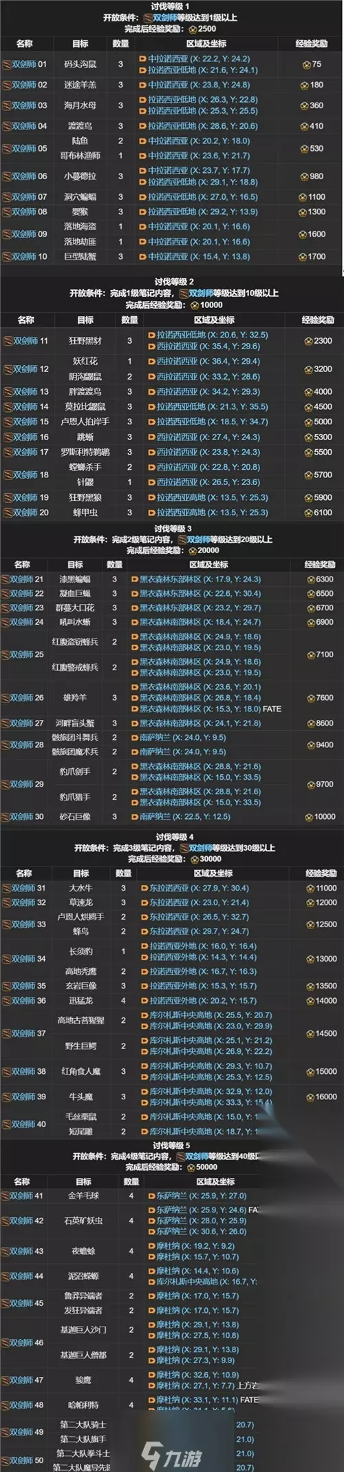 最终幻想14讨伐笔记对应的怪物在哪里?最终幻想14各个职业都有一本对应的讨伐笔记,里面的目标就是击杀各种怪物,从而获得大量的经验。那么接下来本站小编就为各位小伙伴带来FF14讨伐笔记全职业怪物位置分布图。 FF14讨伐笔记怪物位置坐标一览 剑术师讨伐笔记怪物坐标图