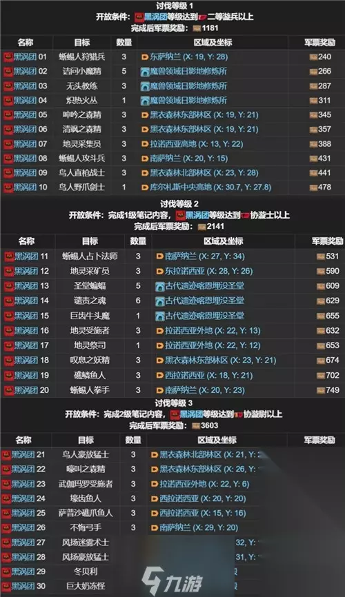 总而言之,前面九个老职业都有讨伐等级4和5,新职业的话目前只有讨伐等级1-3,想要开启讨伐等级2,就必须将讨伐等级1目录中的所有怪物目标任务全部达成才行。