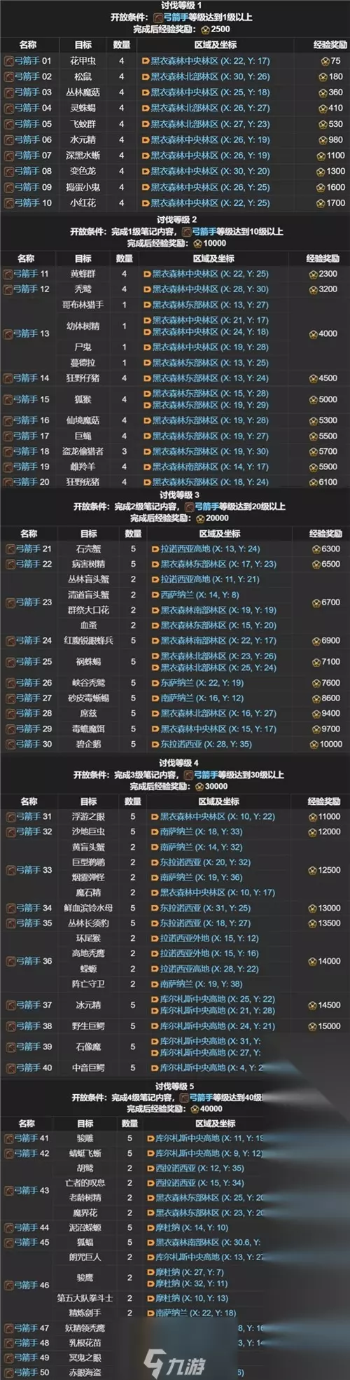 弓箭手讨伐笔记怪物坐标图