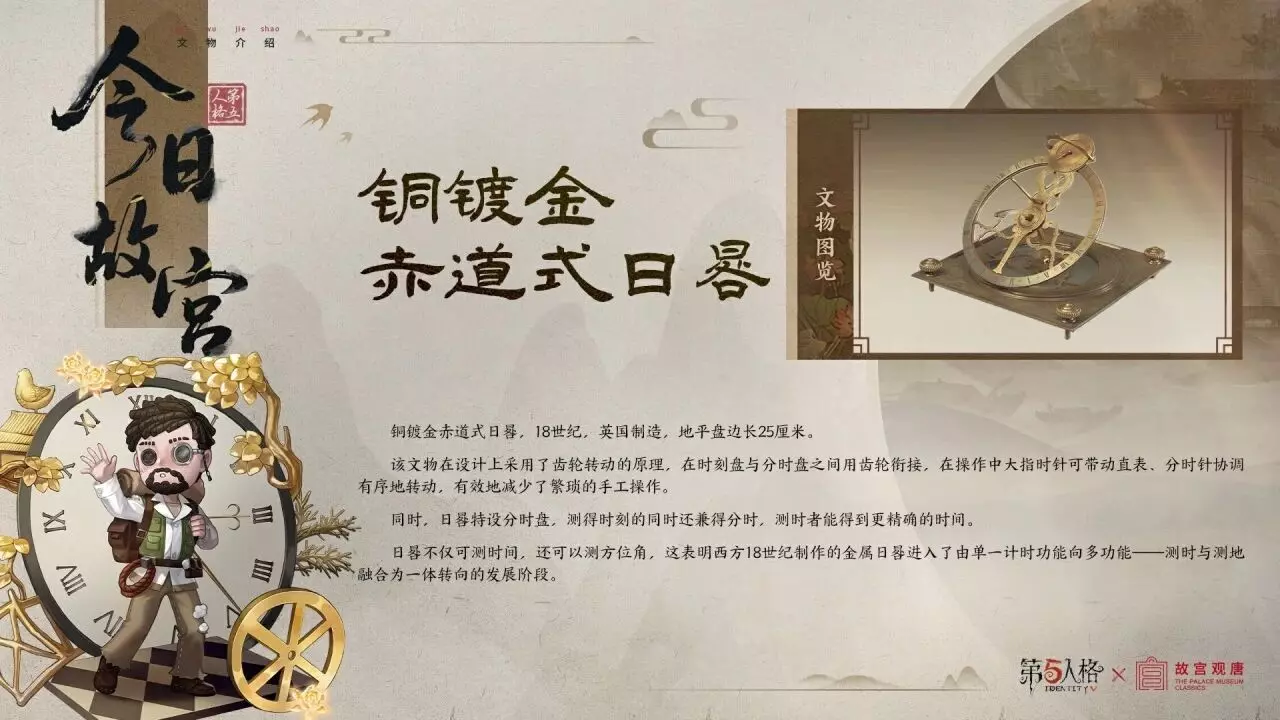 【第五人格×故宫观唐】今日故宫科普系列之「铜镀金赤道式日晷」,百年前计时的智慧,至今依旧闪耀。