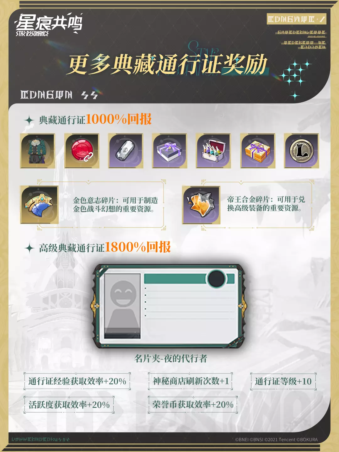 购买后,可在「典藏通行证」奖励的基础上,立即获取卢诺×150,000、名片夹-夜的代行者1、专注恢复剂*5,并解锁多项赛季特权,提升资源获取效率。