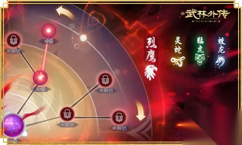 图4 四象属性 策略培养 玉灵系统除元始孔位外,分烈鹰、蛟龙、灵蛇、猛虎四象,培养后可提升对应属性,精通、暴击、闪避、抗暴…少侠可根据自身作战流派取长补短,策略选择所需属性,进行精准强化,达到事半功倍的效果。