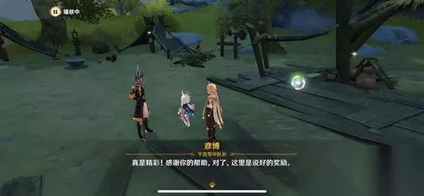 4、传送到采樵谷,进入营地和彦博对话。
