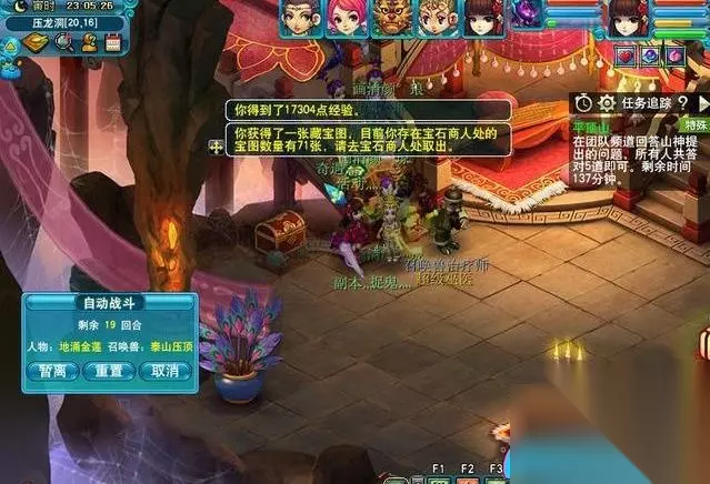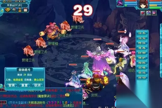 七、答题(单人任务)。点击野猪精后触发最终BOSS战斗。团队频道中会出现山神的提问(数学题),需要在团队频道内回答正确,共需答对5题。