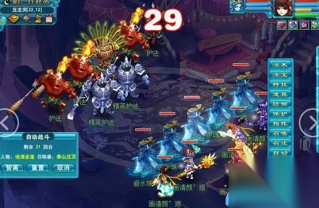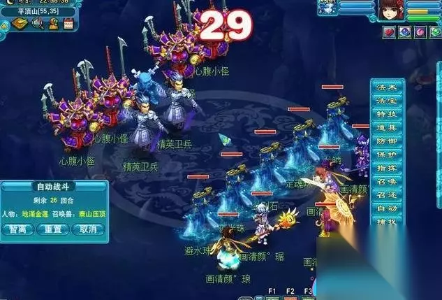 五、消灭精细鬼和2个卫兵(一队击败精细鬼,另一队击败2个卫兵)。位于地图52.26附近。 1.在击败精细鬼时需要注意主召唤出的葫芦,要优先击杀。葫芦会立即杀死一个角色,击败葫芦后会自动复活(难度简单)。