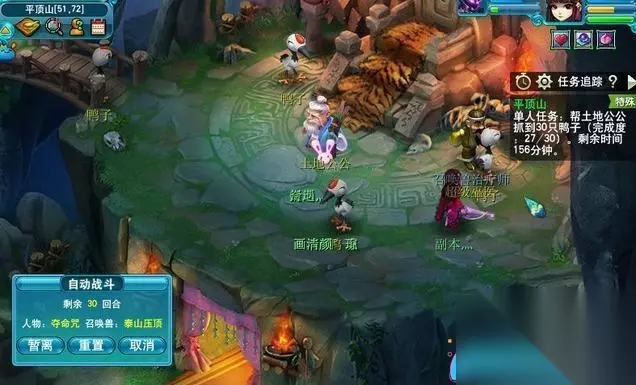 副奖励:包宝石、修炼果、珍珠、装、宠装、海产和彩果等(具体奖励取决于NPC)。 任务流程: 一、击败三只怪物(难度简单)。 二、捕捉30只鸭子(单人任务)。在选项中随便选择即可。