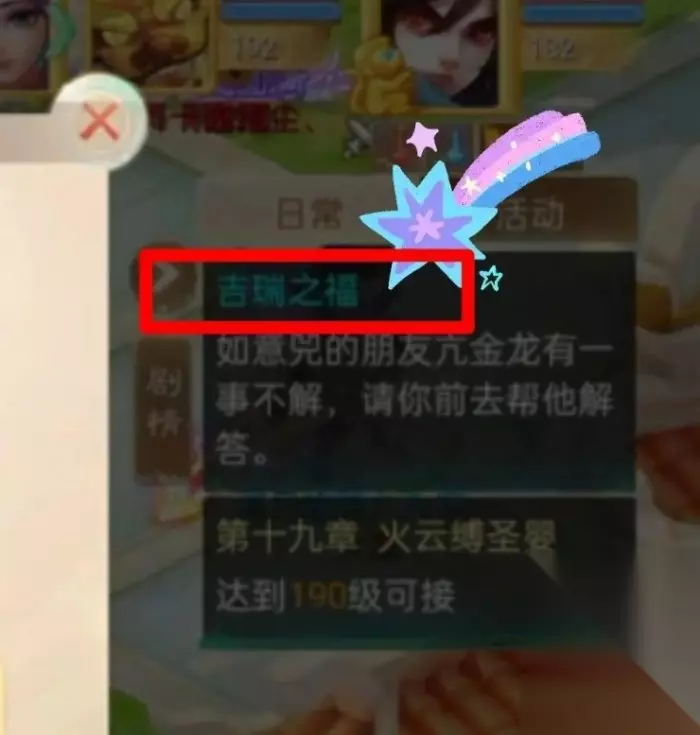 如果任务引导位置写的是国瑞之福那你就中大奖啦,完成任务后100%会获得随机元气丹一个,这下各位少侠明白了吧。最后各位少侠不要忘了每天算一卦,上上签还是会给功绩的,这个概率会更难,但是只要坚持就会有收获。