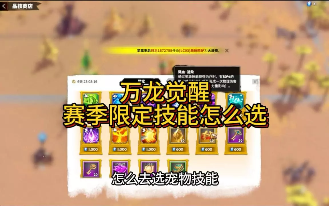 这是《万龙觉醒》的平民向宠物交易行技巧帖,能帮玩家节省宠物交易币。帖中展示了宠物栏的传说宠物蓝闪仙女龙及其技能,还有宠物交易行的技能购买界面,教平民玩家在宠物养成上快人一步。