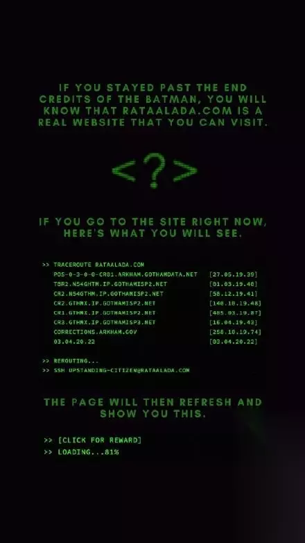 t15_2-t15_1:4.0 新蝙蝠侠有什么彩蛋?新蝙蝠侠在3月18日正式上映了,目前本土票房已累计2.5亿美元,电影将会出现企鹅人以及谜语人这些经典反派,那么新蝙蝠侠都有哪些彩蛋呢?下面就让小编为大家介绍一下吧。 新蝙蝠侠彩蛋介绍 一、彩蛋介绍 《新蝙蝠侠》片尾彩蛋在全部字幕跑完后出现,在等待大约8~9分钟左右,仅仅只有出现2个英文字与一个标点符号,就是「Good Bye」与「?」,而这个呈现方式正是当初蝙蝠侠与谜语人在网络上沟通时的画面,这个片尾画面暗示《新蝙蝠侠》有续集,根据结尾谜语人在阿卡汉精神病院的对话,可以看到《新蝙蝠侠2》可能将加入另一个经典反派「小丑」,这两位是否会联手一起击败蝙蝠侠呢?还是会各自为谋而内斗呢?让人拭目以待!