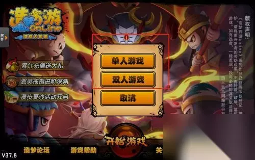 3.根据个人需求选择单人游戏或双人游戏,这里以单人游戏举例
