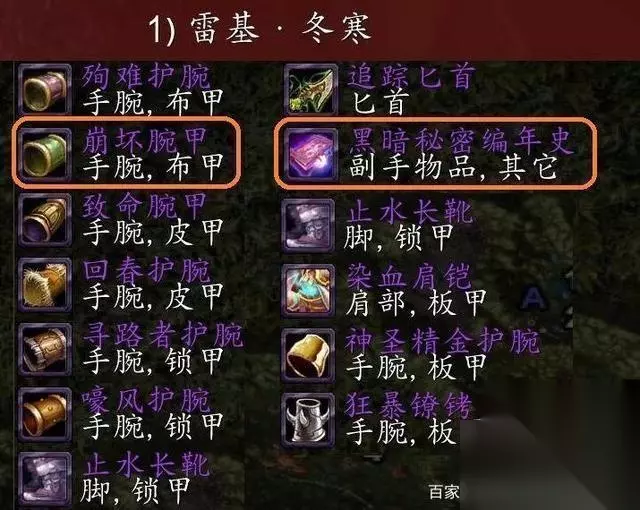 雷基·冬寒还掉落多种护腕,这些带槽护腕属性都很棒其中很多还是BIS装但考虑到供求关系能拍出高价的大概只有法系DPS的崩坏腕甲了。 安纳塞隆