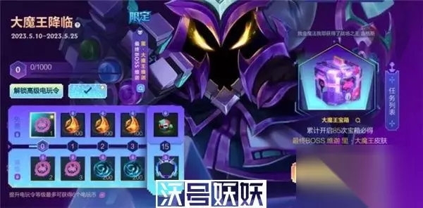 大魔王降临 邪恶的最终BOSS 维迦 里·大魔王 维迦即将降临峡谷!他向所有召唤师发起一项“电玩挑战”~在最新的“大魔王降临”活动中克服重重难关,提升电玩令等级,将维迦藏起来的奖励统统拿到手! 活动时间 5月10日11:00陆续开启-5月25日23:59 活动规则 (1)活动期间,召唤师可通过完成任务领取电玩令经验,提升电玩令等级。达到对应的电玩令等级后,即可直接领取对应奖励; (2)召唤师可通过消耗300点券解锁高级电玩令,以解锁获取更多更稀有的奖励; (3)每获取1000电玩令经验可提升电玩令1级,每消耗100点券可立即获得1000电玩令经验,提升电玩令1级; 使用电玩币可开启大魔王宝箱,召唤师可通过电玩令获取电玩币,或消耗60点券购买1个金牛战旗(7天),将额外获赠1个电玩币,达成指定开启次数后,必定获得最终BOSS 维迦 里·大魔王 维迦皮肤; 温馨提示:电玩币将在活动结束后回收,请注意及时使用。 (7)大魔王宝箱具体奖励内容如下: 大魔王宝箱奖励内容 最终BOSS 维迦 里·大魔王 维迦 电玩女神 阿狸 电玩女神 厄运小姐 电玩勇者 锐雯 电玩上校 库奇 电玩女神 娑娜 电玩女神 卡莎 战场之王 布里茨 战场之王 亚索 战场之王 吉格斯 皮肤边框:里·大魔王 边框 回城特效:电玩之光 击败印记:极限操作 表情 :电竞达人 表情 :收下这颗心~ 姿态:斗舞 姿态:自信 姿态:悠闲 姿态:掂剑 姿态:起飞 姿态:打碟 姿态:机警 姿态:凶悍 姿态:警戒 姿态:电玩 姿态:吹笛 团魂卡*1 魄罗能量*1000 魄罗能量*300 魄罗能量*288 魄罗能量*198 魄罗能量*188 战场之王 集齐有礼 大魔王降临,战场之王集结!5月10日10:00至5月23日,召唤师若集齐战场之王 布兰德、战场之王 亚索、战场之王 吉格斯、战场之王 布里茨、最终BOSS 维迦以及最终BOSS 维迦 里·大魔王 维迦6款皮肤,即可领取全新动态头像框!