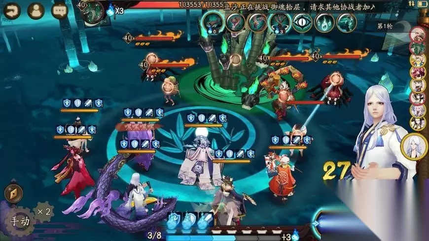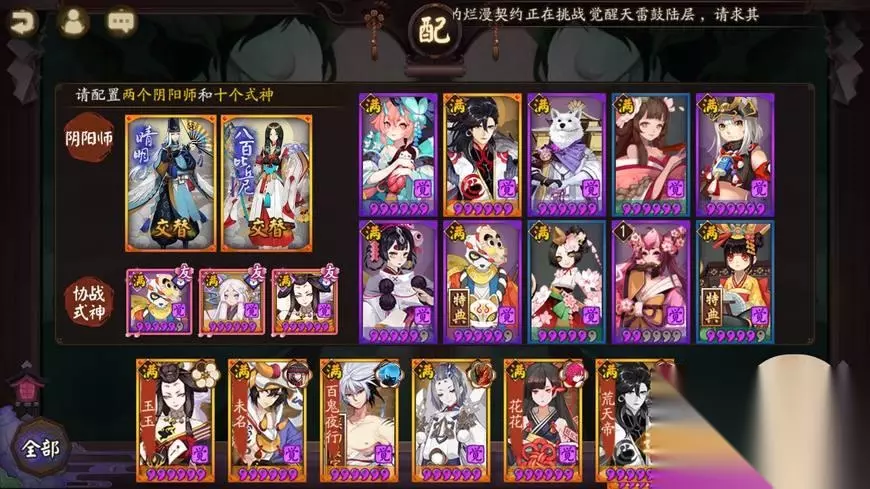 如图所示,两只220以上的招财镰鼬、火灵辉夜姬、蚌精匣子、针女荒、针女犬神、招财椒图、高级输出核心黑童子、招财百目鬼或兵俑、破势丑女、一级招财桃花、辅助牺牲角色山兔以及强力的玉藻前。 晴明负责生命和防护,第二位阴阳师可随意选择,神乐或比基尼都可以。 相信看到黑童子,大家应该能明白是怎样的原理了。 第一关非常重要,需要多次尝试,直到成功为止。 速度顺序:镰鼬、丑女、晴明、玉藻前、辉夜姬、黑童子、桃花。