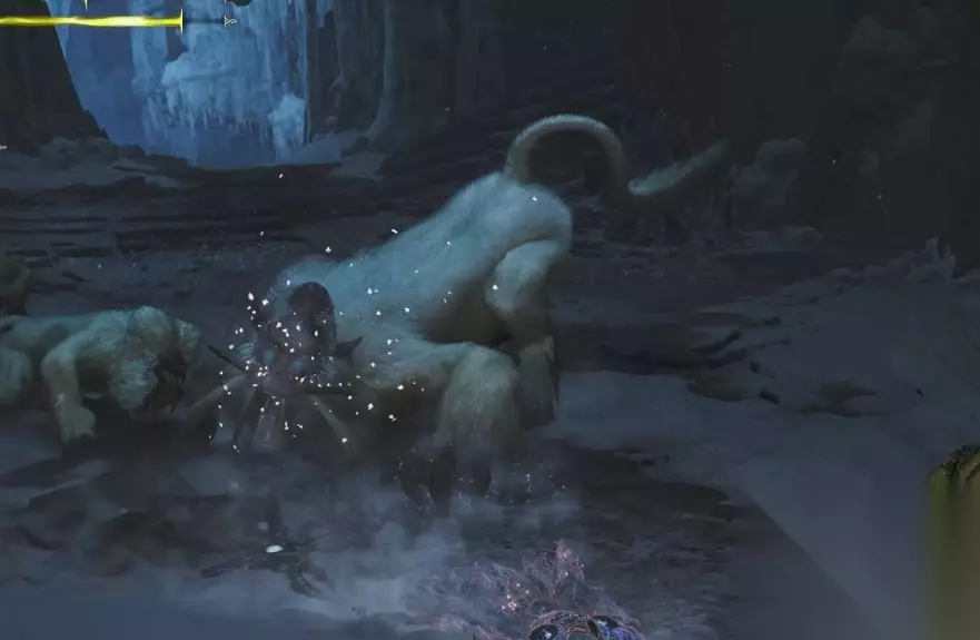 4.单爪拍击 黑蚀龙将抬起单爪进行蓄力,蓄力完毕后用爪子拍击地面。此攻击速度较快,但有明显的蓄力动作,玩家可以通过闪避来避免伤害。