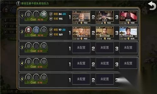 点击【部队互换】可以进行多只部队之间的无损兵力的将领互换