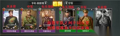t15_2-t15_1:6.0 在上一篇文章中,小编带大家了解了<帝国将军的荣耀>这款游戏的基本玩法以及世界观,今天给大家重点介绍游戏中的军队配置功能。在这里需要先和大家分享几个游戏内的设定定义 阵型配置:每只军队最多可配置 大本营 —— 中军 —— 先头部队 三个位置的将领卡,每个位置之间的距离为1,军队在无大本营配置的情况下,不可出战。 距离:距离的计算方法为“敌我顶头,逐位加一”。例如:我军“先头部队”将领与敌方“先头部队”将领的距离为1,我军“中军”将领与敌军“先头部队”将领距离为2。当距离超过将领有效攻击范围时,将无法攻击敌军部队; Cost:配置军队所有将领的Cost之和不可超越军队Cost总和上限,总和上限可通过升级市政厅等建筑来进行提升; 兵种:将领都有自己的将领属性,共有“坦克”“步兵”“炮兵”三类;互相制约关系为坦克克步兵,步兵克炮兵,炮兵克坦克;后期可以进行兵种转换,或者更高等级兵种研究。