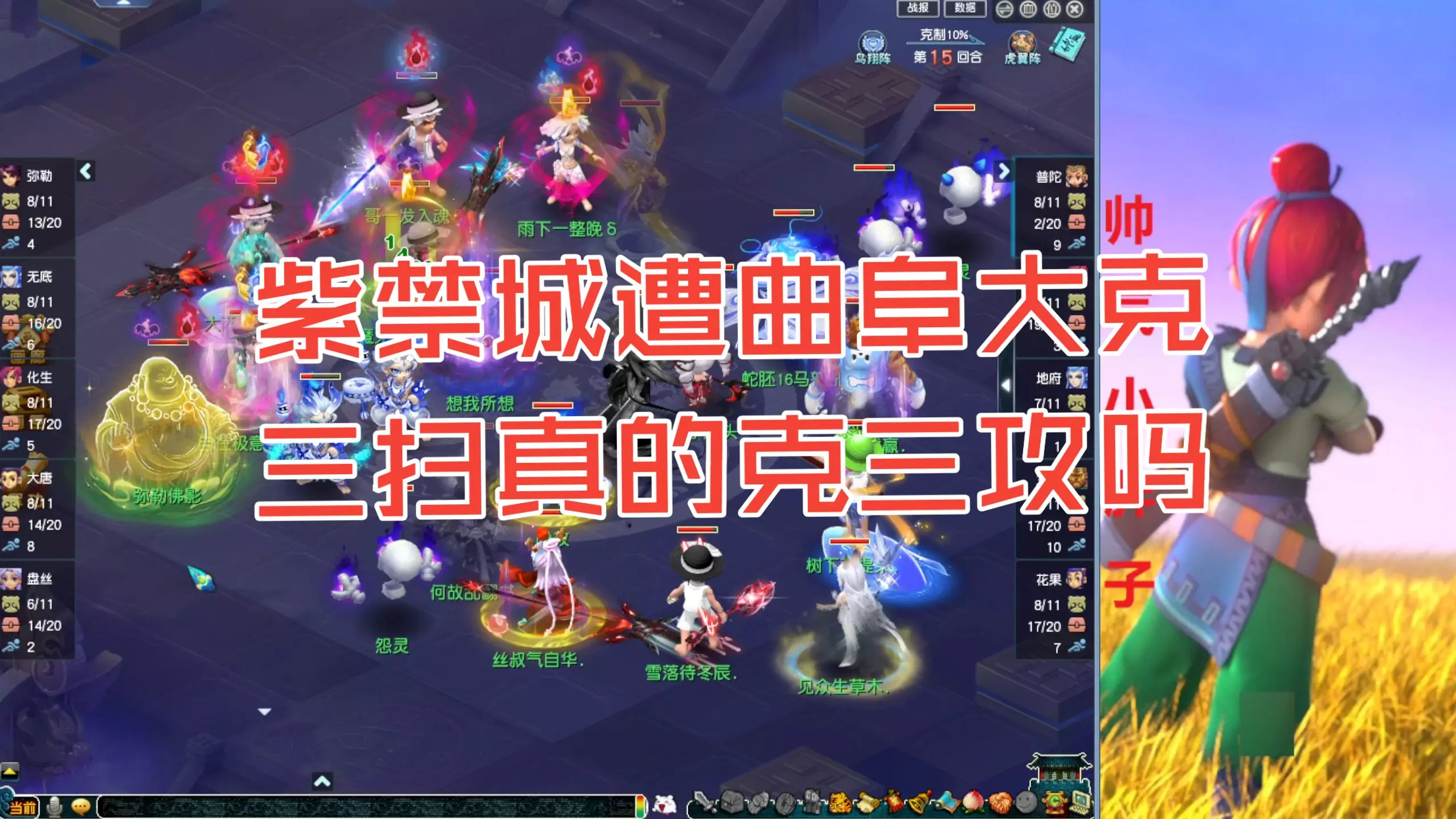 这是梦幻西游群雄冠军杯里钓鱼岛与紫禁城的顶级三攻对决,双方在对战中召唤怨灵、幻魔等召唤兽,展开精彩的攻防博弈,战斗回合逐步推进,尽显赛事的激烈。