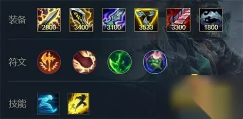 解析:线上可以猥琐一点,先发育。尽量别丢一塔。可以多带一点线,吃点野怪。团战攒怒气,攒满。侧面冲上去打c。别怕失败,你有复活甲,可以多携带。 3、出装三:斯塔缇克电刃+无尽之刃+破败王者之刃+三相之力+饮血剑+水银饰带