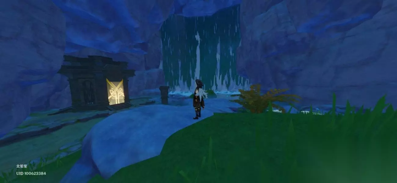 第五个位置: 灵矩关的一个瀑布旁边,山底下;
